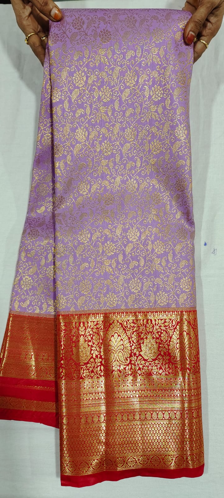 Be the first to review “E0E1009 Lavender kanchi pattu sarees in red border”