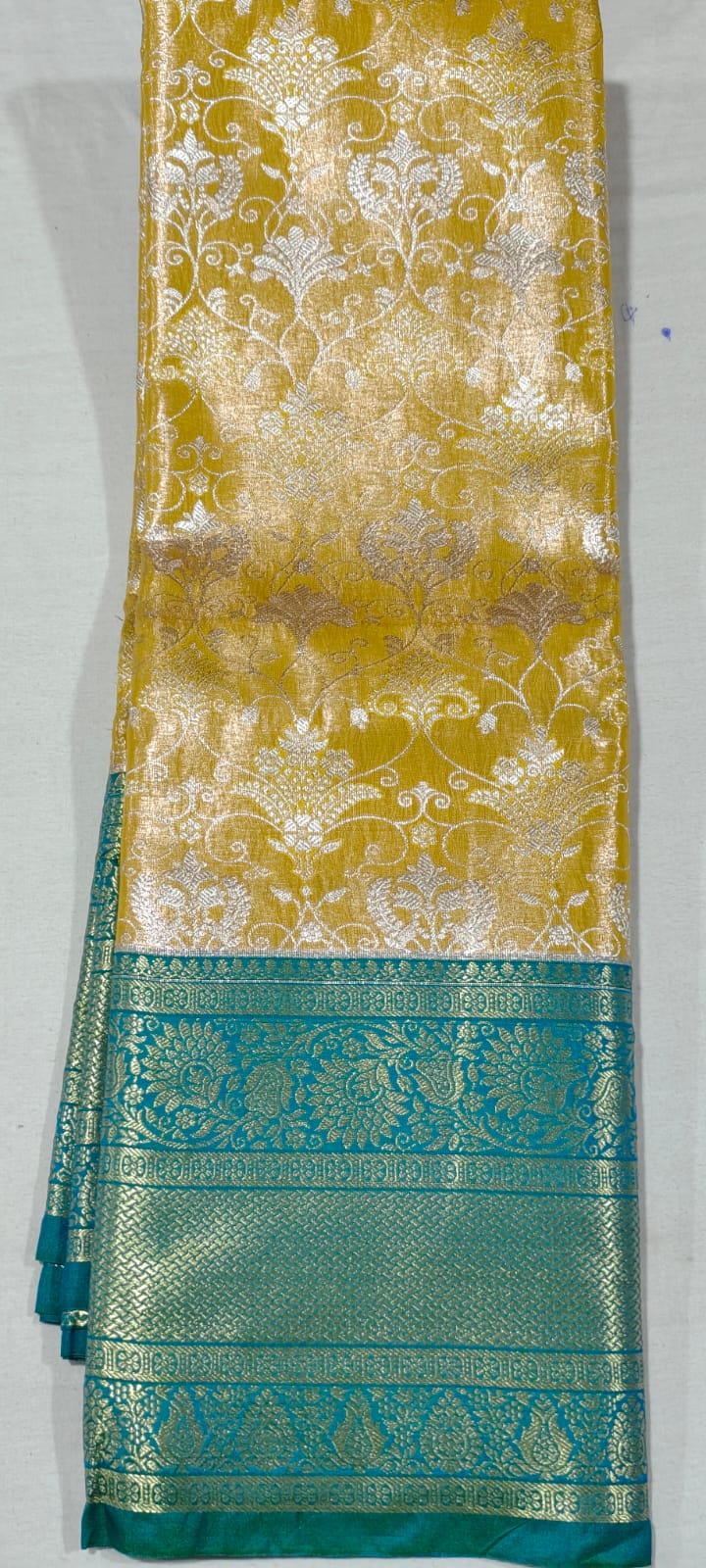 Gold kanchi pattu saree online at Hyderabad Bangalore contrast Rama green border buy online or Visit