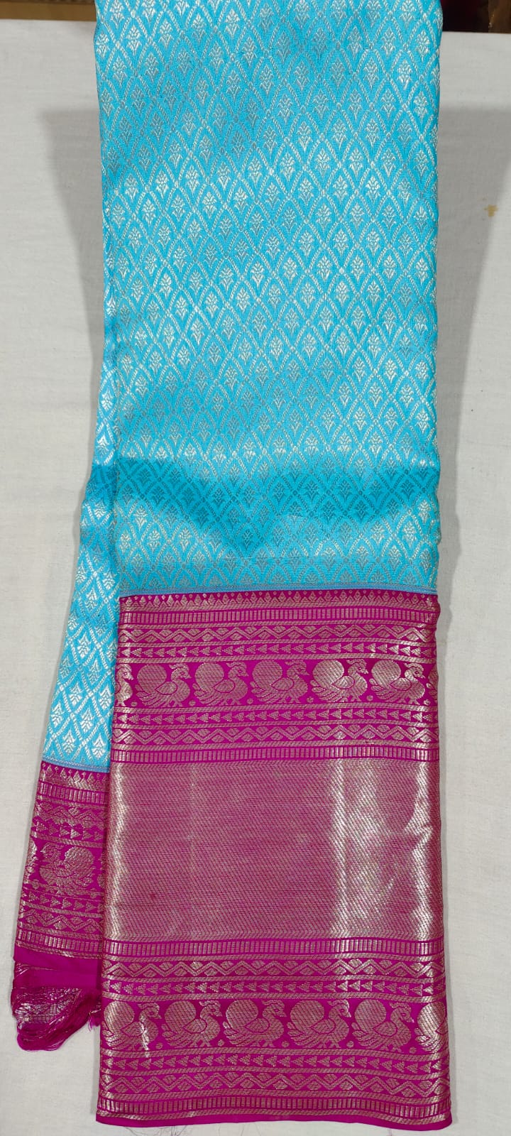 𝗕𝗲𝗻𝗴𝗮𝗹𝘂𝗿𝘂 𝗦𝘁𝗮𝗹𝗹 :- 𝗞𝗮𝗻𝗰𝗵𝗶 𝗗𝗲𝘀𝗶𝗴𝗻𝗲𝗿𝘀 𝗦𝗶𝗹𝗸𝘀 𝟭𝟰𝟲, 𝟲𝘁𝗵 𝗰 𝗺𝗮𝗶𝗻 𝗿𝗼𝗮𝗱, 𝟰𝘁𝗵 𝗯𝗹𝗼𝗰𝗸, 𝗷𝗮𝘆𝗮𝗻𝗮𝗴𝗮𝗿 𝗕𝗲𝗻𝗴𝗮𝗹𝘂𝗿𝘂 – 𝟱𝟲𝟬𝟬𝟭𝟭 𝗪𝗵𝗮𝘁𝘀𝗮𝗽𝗽: 𝟵𝟯𝟵𝟴𝟯𝟭𝟲𝟴𝟯𝟳 Fabric : Pure silk Silk mark certified 𝗛𝗼𝘄 𝘁𝗼 𝗼𝗿𝗱𝗲𝗿 𝗼𝗻𝗹𝗶𝗻𝗲 ? 1. Through our WhatsApp 9182075118 : Please send us the saree code and your shipping address, we will process your order manually and send you the shipping details 2. Through our website Kanchidesigners.com : You can order online from our website kanchidesigners.com by typing the saree code in the search option and place order. For any queries regarding your order, please whatsapp 9182075118, 𝗗𝗲𝗹𝗶𝘃𝗲𝗿𝘆 𝗧𝗶𝗺𝗲 : Please note the delivery time takes between 3 to 7 days time after you place the order. 𝗗𝗮𝗺𝗮𝗴𝗲𝘀 𝗼𝗿 𝗥𝗲𝘁𝘂𝗿𝗻𝘀 :- Full Opening video is must for product replacement if any damages is there. We double check before we ship your product. 𝗗𝗼’𝘀 𝗮𝗻𝗱 𝗗𝗼𝗻𝘁’𝘀 𝗳𝗼𝗿 𝗦𝗮𝗿𝗲𝗲 :- Do not wash the saree by hand or washing machine. Do dry clean only. Do not dry the saree in direct sunlight. Dry it in a shadow. Do not store the sarees in boxes or polythene covers saree buy online or Visit 𝗛𝘆𝗱𝗲𝗿𝗮𝗯𝗮𝗱 𝗦𝗵𝗼𝗽 :