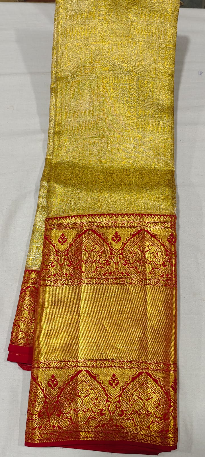 Gold kanchipuram silk saree online at Hyderabad Bangalore contrast red border buy online or Visit