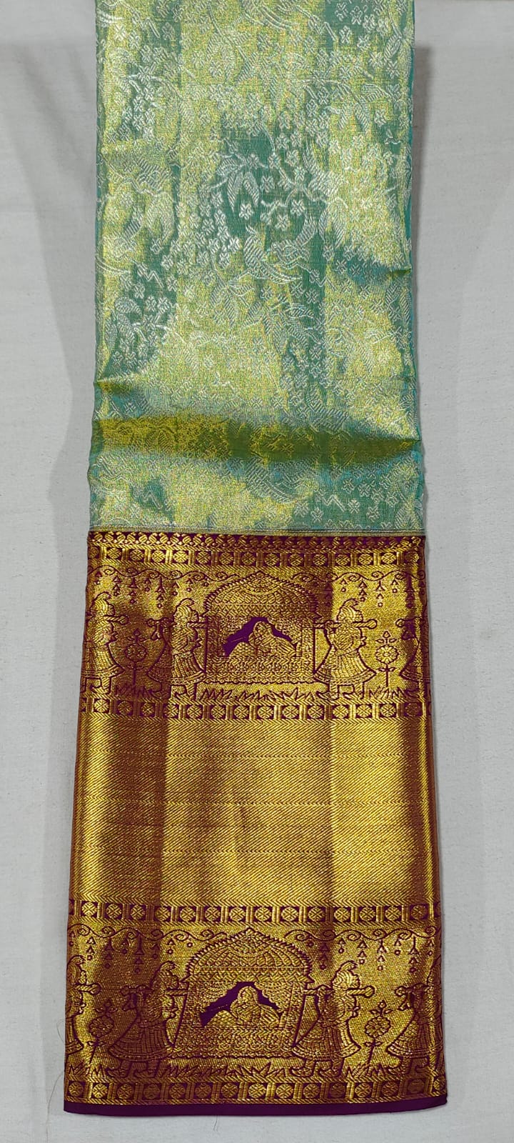 Be the first to review “LL2023 Pista green Kanchipuram wedding silk saree online at Hyderabad Bangalore contrast purple border”